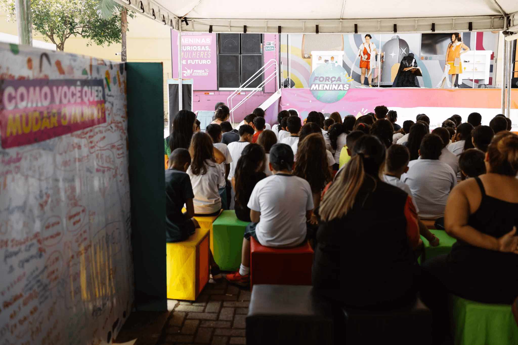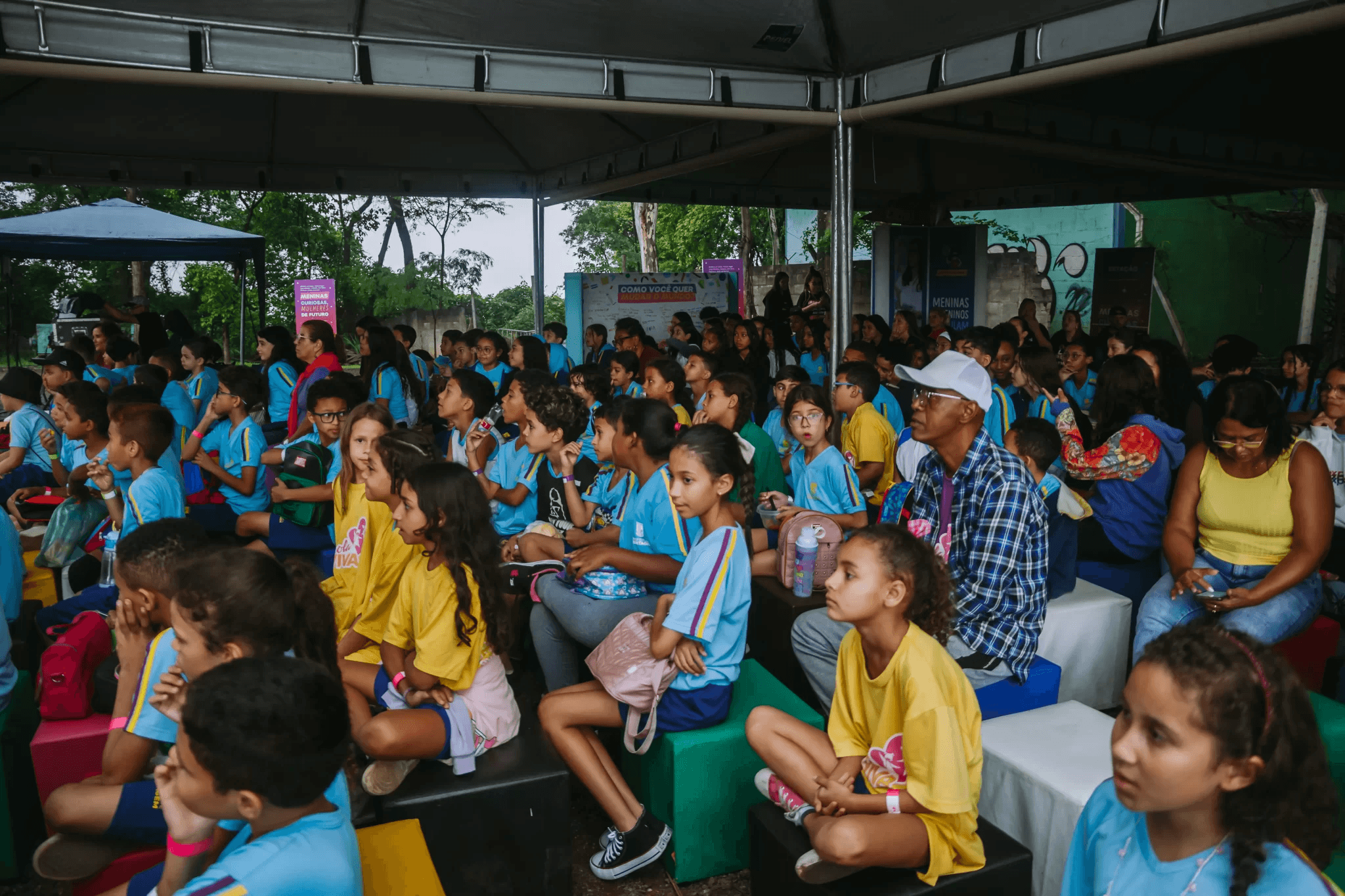 A programação gratuita contou com cinco estações temáticas, como Pequeno Grande Mundo e Mude o Mundo LAB, que estimularam a criatividade e a reflexão. Na estação Bússola de Carreiras, os jovens usaram óculos de realidade virtual para explorar profissões como engenheira, biomédica e piloto de avião, vivenciando carreiras inovadoras e desafiadoras.
