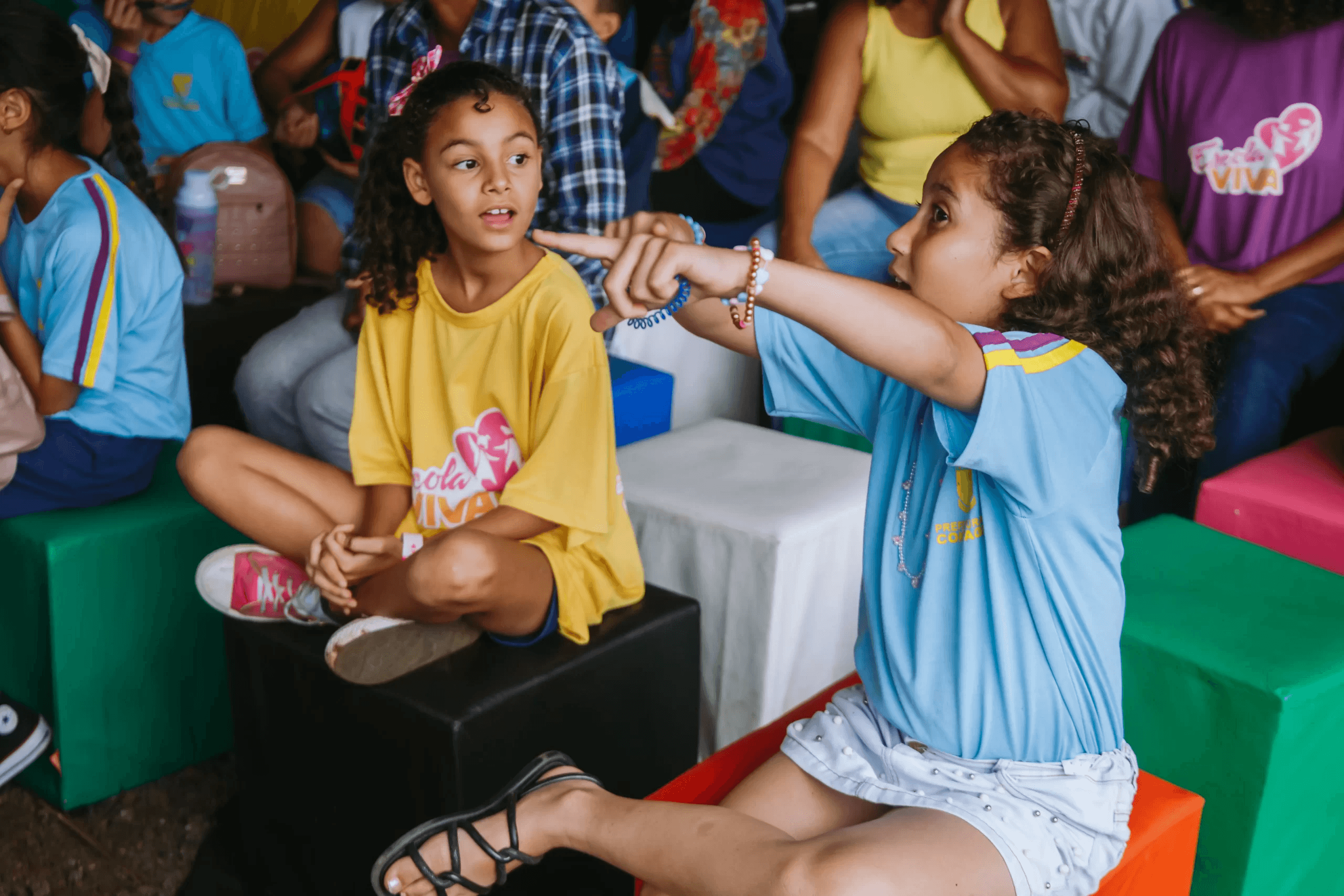 Crianças atentas à apresentação.