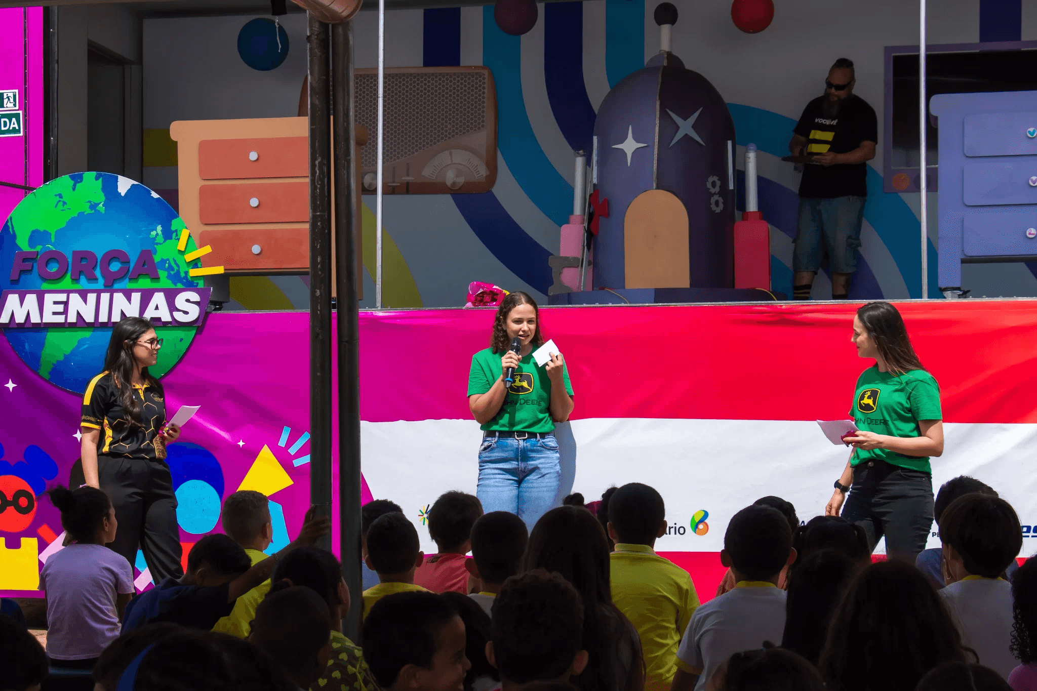 Representantes da john deere compartilhando conhecimento e inspirando a nova geração no força meninas